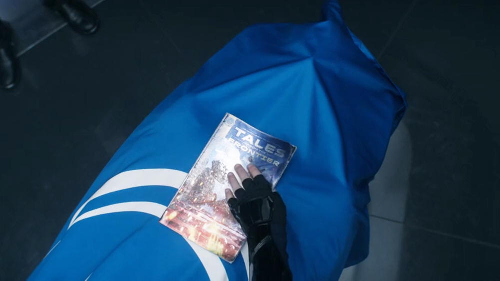 The prop comic was designed by art director Stuart Pearce from the SFA graphic arts department. Pages from the comic were displayed on a bridge console 32 minutes into the episode, and a physical version of the comic was shown during a funeral near the end of the episode.