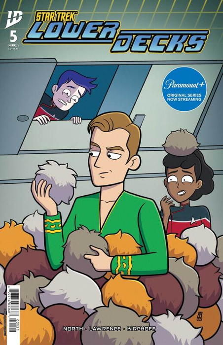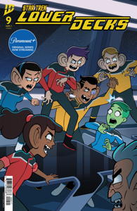 Solicitation: The thrilling conclusion to the mystery of the vanished Laapeerians! The Enterprise has joined the tumultuous space battle between Captain Freeman and her crew against their dangerous alien assailants. Starfleet might not know who these invaders are, but they're certain they have something to do with the missing population of Laapeeria... It's up to the Lower Deckers to not only defeat the superpowered ship but recover a whole planet's worth of people and reunite with Boimler and his away crew while doing it. And then they'll all hug and stuff, $@!*.